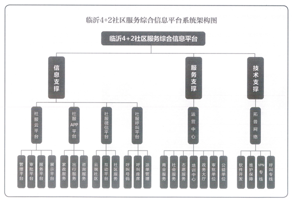 日前,由臨沂市民政局聯(lián)合臨沂拓普網(wǎng)絡(luò)公司,依托臨沂市云計算中心,采用大數(shù)據(jù)分析技術(shù)傾心打造的4+2社區(qū)服務(wù)綜合信息平臺系統(tǒng)正式啟用。 如果家里的管道漏水了,不必太著急,通過手機里的“社服App”找到維修公司電話,不出半小時,維修師傅便會上門修好--4+2社區(qū)(公共)服務(wù)綜合信息平臺系統(tǒng)帶來了便捷的服務(wù),臨沂市民喜上眉梢。 當家里有人生重病生活困難想申請醫(yī)療救助時,不需東奔西跑,只要帶著相關(guān)材料到家門口的社區(qū)服務(wù)大廳,短短幾分鐘時間,工作人員就會辦好--4+2社區(qū)(公共)服務(wù)綜合信息平臺系統(tǒng)帶來了高效的服務(wù),臨沂市民的幸福指數(shù)又有提高。 “點擊手機、打個電話就能解決日常生活中遇到的困難,現(xiàn)在的社區(qū)服務(wù)真給力!”“現(xiàn)在的網(wǎng)上申請,真是省力又省心!”--4+2社區(qū)(公共)服務(wù)綜合信息平臺贏得了臨沂市民的拍手稱贊。 相對而言,臨沂市4+2社區(qū)服務(wù)綜合信息平臺系統(tǒng)更高效、更快捷、更全面,走在了山東省乃至全國前列,值得學習和推廣。臨沂市民政局是如何推進4+2社區(qū)服務(wù)綜合信息平臺系統(tǒng)建設(shè)的?其內(nèi)容、功能有哪些?有何特點?本刊記者采訪了臨沂市民政局局長高振凱-- 臨沂市為何要推進社區(qū)(公共)服務(wù)綜合信息平臺系統(tǒng)建設(shè)? 2013年,民政部、財政部、發(fā)改委等五部委聯(lián)合出臺了《關(guān)于推進社區(qū)公共服務(wù)綜合信息平臺建設(shè)的指導(dǎo)意見》(民發(fā)[2013]170號),對社區(qū)公共服務(wù)綜合信息平臺建設(shè)做出了具體規(guī)劃,提出了明確要求;2014年,國家發(fā)改委、中央編辦、國家工業(yè)和信息化部、財政部、教育部、公安部、民政部、人力資源和社會保障部、衛(wèi)生計生委、審計署、食品藥品監(jiān)管總局、國家標準委出臺了《關(guān)于加快實施信息惠民工程有關(guān)工作的通知》(發(fā)改高技[2014] 46號)。山東省也把這項工作提上了重要議事日程。2014年,省民政廳聯(lián)合省發(fā)改委、經(jīng)信委、公安廳、財政廳出臺了《關(guān)于加強社區(qū)公共服務(wù)綜合信息平臺建設(shè)的意見》(魯發(fā)[2014] 55號)。對上級的部署要求,臨沂市民政局高度重視,積極行動,將社區(qū)服務(wù)綜合信息平臺建設(shè),作為社區(qū)治理和服務(wù)創(chuàng)新的重要機遇和有效抓手進行安排、部署和推進。 臨沂4+2社區(qū)(公共)服務(wù)綜合信息平臺系統(tǒng)建設(shè)進展情況如何? 2014年9月始,臨沂市民政局作為理念框架總設(shè)計師,臨沂拓普網(wǎng)絡(luò)有限公司作為技術(shù)開發(fā)總工程師,在到杭州、上海、蕪湖等地認真考察調(diào)研的基礎(chǔ)上.投人大量人力物力和財力進行了聯(lián)合研發(fā)。 2015年3月始,先后確定了蘭山區(qū)、羅莊區(qū)、河東區(qū)、沂水縣、費縣、臨沂經(jīng)濟技術(shù)開發(fā)區(qū)、臨沂臨港經(jīng)濟開發(fā)區(qū)七個縣區(qū)開展試點工作。試點社區(qū)全部安裝開通了社區(qū)服務(wù)綜合信息平臺系統(tǒng),并且在受理審批業(yè)務(wù)、實施社區(qū)管理、開展社區(qū)服務(wù)、實行居務(wù)公開等方面常態(tài)化使用這個平臺,收到了很好效果,受到了廣大社區(qū)干部和社區(qū)居民的歡迎。 2016年4月12日,召開臨沂4+2社區(qū)服務(wù)綜合信息平臺系統(tǒng)啟用新聞發(fā)布會,就平臺系統(tǒng)邊試點邊完善邊運行以來的情況向媒體和社會進行集中通報,并宣布該平臺系統(tǒng)開始正式投入運行使用并對外推介。 計劃2018年底前,完成全市城鄉(xiāng)社區(qū)服務(wù)綜合信息平臺系統(tǒng)全覆蓋,與山東省委部署的農(nóng)村社區(qū)服務(wù)中心建設(shè)“三年行動計劃”全覆蓋同步推進。