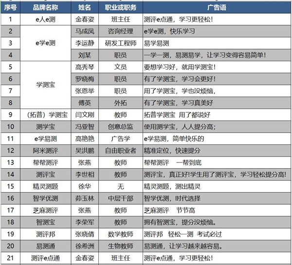 | 拓普學(xué)業(yè)測(cè)評(píng)系統(tǒng)名稱及廣告語有獎(jiǎng)?wù)骷顒?dòng)“入圍獎(jiǎng)”名單公示 |