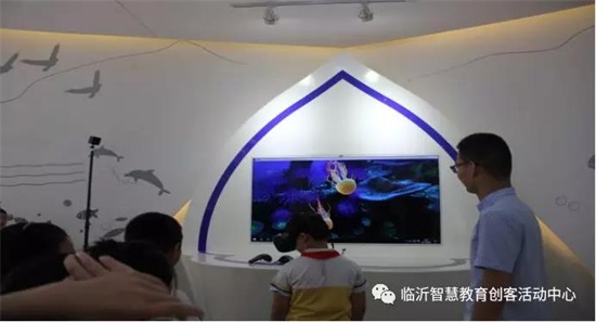 臨沂市智慧教育創(chuàng)客活動中心是臨沂市智慧教育云項目的重要組成部分,由臨沂市拓普網(wǎng)絡(luò)股份有限公司投資1 億元建設(shè),總建筑面積5000平方米,通過智能體驗、智能模擬、線上線下全景展示等高科技互動體驗產(chǎn)品為手段,培養(yǎng)學生動手實踐能力,激發(fā)學生的創(chuàng)新熱情,在“學-思-動-用-創(chuàng)”的結(jié)合中,實現(xiàn)學生全發(fā)面發(fā)展,促進現(xiàn)代信息技術(shù)與教育實踐融合。 玩轉(zhuǎn)創(chuàng)客 1.VR視界 VR可以成為非常有力的工具,讓學生們沉浸在這些新的世界和地方——去看他們從未看到過的事物。在虛擬的海底世界里暢游,用手柄和魚兒、海草還有水母親密互動;可以佩戴VR眼鏡探索人體的奧秘,將所學的生物知識運用起來;在虛擬教室讓學生在這種既可觀賞又可動手操作的VR學習環(huán)境中,加深對知識點的記憶。