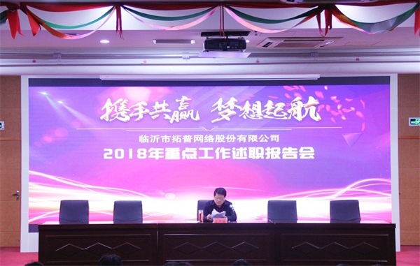 2018年3月3日,臨沂市拓普網(wǎng)絡(luò)股份有限公司“2018年重點工作述職報告會”在園區(qū)學(xué)術(shù)報告廳舉行,全體員工300余人參加了此次大會,公司各部門分管負(fù)責(zé)人分別就本職部門的工作計劃作具體發(fā)言報告。