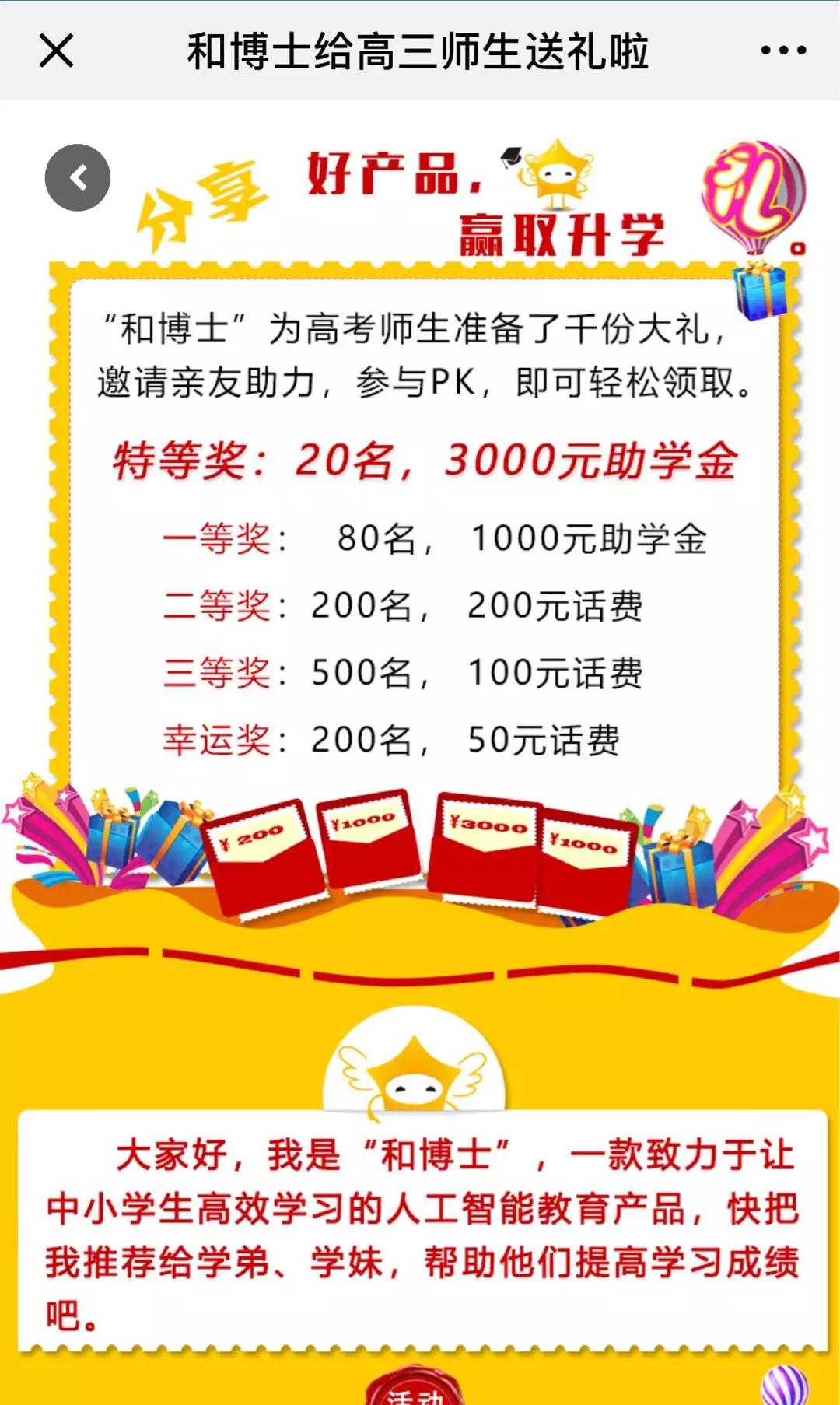 通過(guò)和博士教育公眾號(hào)點(diǎn)擊『贏助學(xué)金』就有機(jī)會(huì)領(lǐng)到25萬(wàn)助學(xué)金和話費(fèi),快來(lái)參加活動(dòng)吧!