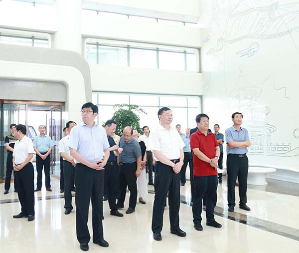 2018年6月28日,日照經(jīng)濟(jì)技術(shù)開發(fā)區(qū)工委書記杜江濤一行到國家中印科技國際創(chuàng)新園參觀考察,市政府黨組成員、開發(fā)區(qū)黨工委書記、管委會主任陳一兵陪同。