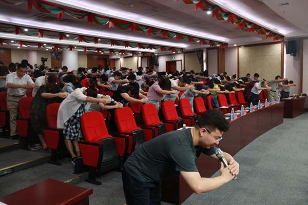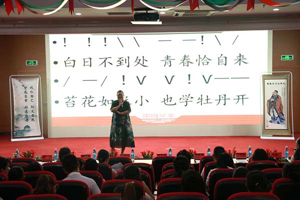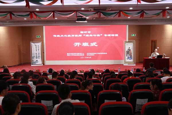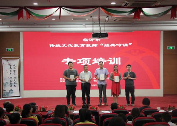 (課前禮儀) 7月10日-13日,由臨沂市教育科學(xué)研究中心主辦,中華優(yōu)秀傳統(tǒng)文化教育促進(jìn)會、青島出版社、臨沂市拓普網(wǎng)絡(luò)股份有限公司協(xié)辦的臨沂市傳統(tǒng)文化教育教師“經(jīng)典吟誦”專項(xiàng)培訓(xùn)會在國家中印國際科技創(chuàng)新園成功舉辦,來自臨沂市內(nèi)各縣區(qū)的400余名傳統(tǒng)文化教育教師參與了此次培訓(xùn)。