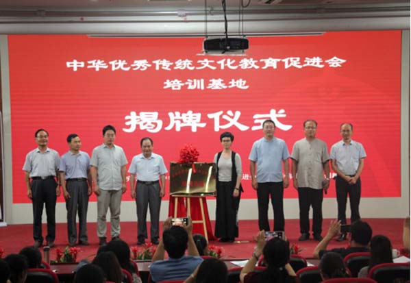 (揭牌儀式) 會議最后,老師們與培訓(xùn)講師一起進(jìn)行了典雅莊重的結(jié)業(yè)式。同時,現(xiàn)場還舉行了國家中印科技國際創(chuàng)新園中華優(yōu)秀傳統(tǒng)文化教育促進(jìn)會培訓(xùn)基地揭牌儀式。拓普網(wǎng)絡(luò)股份有限公司副總經(jīng)理張金剛在揭牌儀式上做了發(fā)言。他表示,今后拓普公司將繼續(xù)為推廣普及吟誦文化工作貢獻(xiàn)力量,將中華優(yōu)秀傳統(tǒng)文化教育工作落到實(shí)處,努力辦好培訓(xùn)基地。臨沂市教育局教科研中心朱成廣科長也表示,吟誦的背后,是對詩文的理解和文化的傳承,吟誦最終的目的是詩歌創(chuàng)作,老師們既要讀經(jīng)典,又要傳記憶,最重要的是將之化為自己的氣質(zhì)。