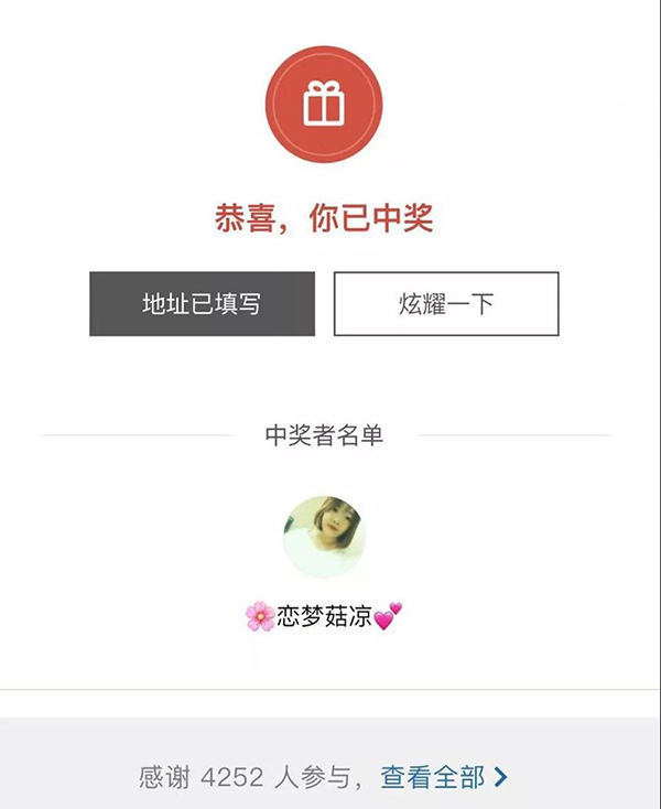 2018年10月16日下午五時許,由臨沂市拓普網(wǎng)絡股份有限公司舉辦的“尋找沂蒙錦鯉”抽獎活動結(jié)果公布。微信昵稱為戀夢菇?jīng)龅暮筒┦坑脩魧⒖們r值50000元的錦鯉大獎收入囊中,成為本次活動的“沂蒙錦鯉”!