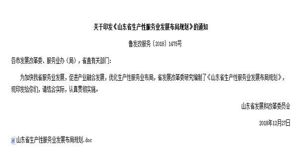 | 國(guó)家中印科技國(guó)際創(chuàng)新園被列入《山東省生產(chǎn)性服務(wù)業(yè)發(fā)展布局規(guī)劃》 |