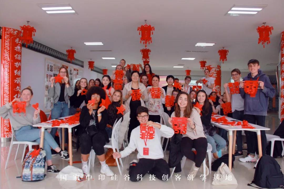 一次大膽的遠(yuǎn)足,衍生無限可能。10月22日,國家中印硅谷科技國際創(chuàng)新園迎來了法國查爾斯福果中學(xué)國際研學(xué)團(tuán),查爾斯福果中學(xué)一行36人,在基地開展了中國傳統(tǒng)文化藝術(shù)研學(xué)之旅。 本次研學(xué)課程涵蓋剪紙、臉譜、蛋雕、中國結(jié)等,來自法國查爾斯福果中學(xué)的學(xué)生們走出了國門、走向國際,從課程中體會(huì)到中國傳統(tǒng)民族文化、風(fēng)土人情的獨(dú)特魅力。