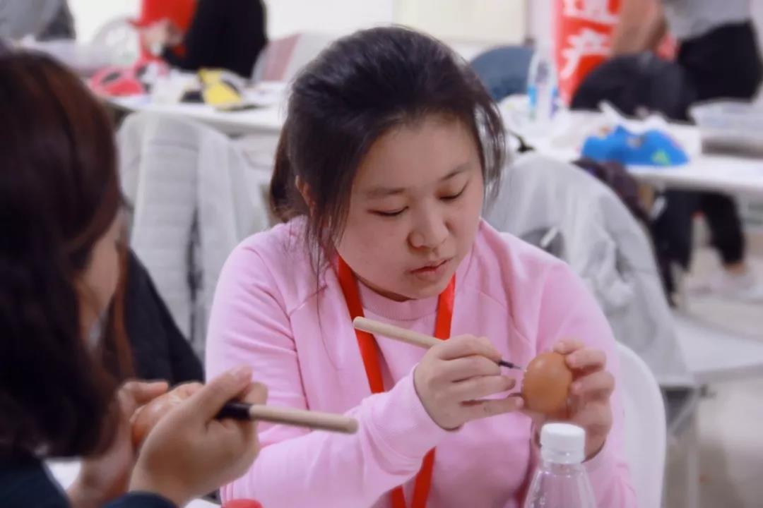 蛋雕是在飛禽類蛋殼上刻琢成畫的一種民間手工藝品,用雕刀在表面顏色較深的蛋殼上雕刻出各種人物、山水、花鳥等圖案。蛋雕的制作難度稍微高一些,來自查爾斯福果中學(xué)的學(xué)生們小心翼翼的雕刻著自己的作品。