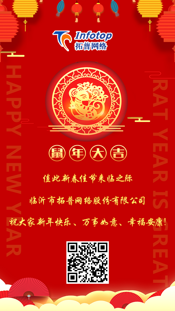 值此新春佳節(jié)來臨之際,臨沂市拓普網(wǎng)絡(luò)股份有限公司向一直以來關(guān)心關(guān)愛、支持幫助公司發(fā)展的各級(jí)領(lǐng)導(dǎo)、社會(huì)各界朋友致以真誠的節(jié)日問候和新春祝福,祝大家在新的一年里工作順利、身體健康、闔家幸福!