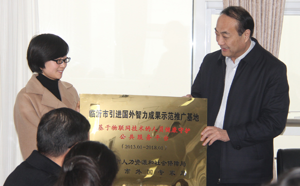 1月30日上午,臨沂市引進(jìn)國(guó)外智力成果示范推廣基地授牌儀式在市人社局舉行。局黨組書記、局長(zhǎng)叢軍出席授牌儀式,局黨組成員、副局長(zhǎng)、市外專局局長(zhǎng)密守勇主持儀式。其中,公司"基于物聯(lián)網(wǎng)技術(shù)的人員健康守護(hù)公共服務(wù)平臺(tái)"榮膺此獎(jiǎng)項(xiàng)。 叢局長(zhǎng)為公司等6家示范基地授牌,并做了講話。叢局長(zhǎng)指出,臨沂市拓普網(wǎng)絡(luò)股份有限公司"基于物聯(lián)網(wǎng)技術(shù)的人員健康守護(hù)公共服務(wù)平臺(tái)"等6處市級(jí)引智示范基地,在引進(jìn)、消化、吸收國(guó)外新品種和新技術(shù)的同時(shí),重視加強(qiáng)自主創(chuàng)新,培育了一批優(yōu)秀的引智成果,創(chuàng)造了良好的經(jīng)濟(jì)社會(huì)效益。建立市級(jí)引智示范基地,就是要促進(jìn)這些引智成果的示范推廣,在更大范圍、更高層次上實(shí)現(xiàn)引智資源和成果共享,達(dá)到"建立一處基地、推廣一片區(qū)域、帶富一方群眾"的目的。 此次榮譽(yù)的獲得,是政府對(duì)公司引智人才工作的充分肯定和認(rèn)可,公司將加大引智基地投入,充分發(fā)揮基地的示范帶動(dòng)作用,推動(dòng)和加速引智成果的推廣轉(zhuǎn)化,加強(qiáng)引智和創(chuàng)新力度,將基地建成集智力引進(jìn)、技術(shù)創(chuàng)新、成果轉(zhuǎn)化于一體的推廣平臺(tái),不斷開創(chuàng)示范基地建設(shè)新局面。 ![]() 叢軍局長(zhǎng)為公司示范基地授牌 |