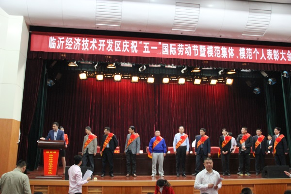 2015年4月29日,為深入貫徹落實(shí)“四個(gè)尊重”重大方針,大力弘揚(yáng)新時(shí)期勞模精神,進(jìn)一步調(diào)動(dòng)開發(fā)區(qū)廣大職工的工作積極性,激發(fā)廣大干部群眾干事創(chuàng)業(yè)的熱情,臨沂經(jīng)濟(jì)技術(shù)開發(fā)區(qū)慶?!拔逡弧眹?guó)際勞動(dòng)節(jié)暨模范集體、模范個(gè)人表彰大會(huì)在管委會(huì)一樓會(huì)議室隆重舉行。其中,公司榮獲“五一勞動(dòng)獎(jiǎng)狀”;副總經(jīng)理曹磊榮獲“五一勞動(dòng)獎(jiǎng)?wù)隆保桓笨偨?jīng)理、工會(huì)主席朱傳博榮獲“工會(huì)工作先進(jìn)個(gè)人”榮譽(yù)稱號(hào)。 一直以來,公司秉承“開拓進(jìn)取,奮勇拼搏,銳意創(chuàng)新”的精神,不斷激發(fā)廣大員工的工作熱情與勞動(dòng)積極性。公司員工愛崗敬業(yè)、勇于創(chuàng)新、同心協(xié)力做事業(yè),團(tuán)結(jié)一致促發(fā)展,一大批優(yōu)秀人才不斷涌現(xiàn),為公司的健康快速持續(xù)發(fā)展做出了巨大的貢獻(xiàn)。 此次榮譽(yù)的獲得將激勵(lì)公司員工在發(fā)展中再創(chuàng)佳績(jī),再立新功,以更加飽滿的熱情、更加昂揚(yáng)的斗志、更加務(wù)實(shí)的作風(fēng),爭(zhēng)先進(jìn)、創(chuàng)事業(yè)、促發(fā)展,為推動(dòng)公司的發(fā)展壯大做出新的更大的貢獻(xiàn)。