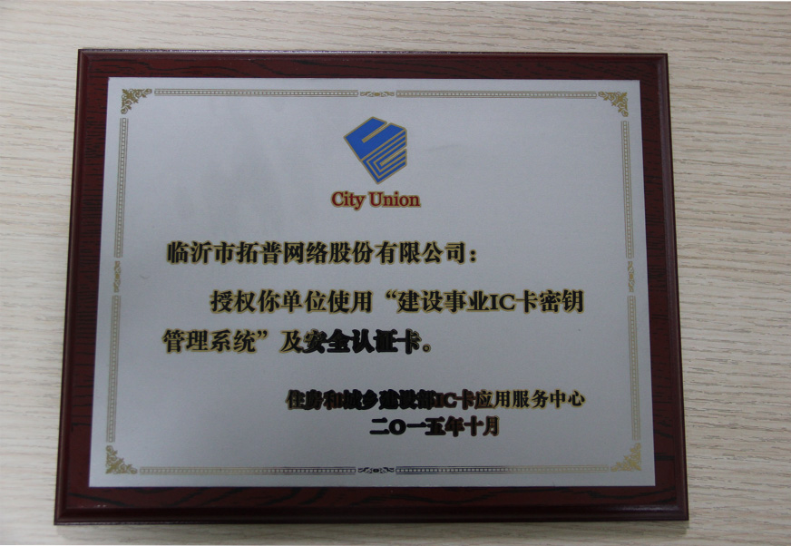 | 熱烈祝賀公司獲得“建設(shè)事業(yè)IC卡密鑰管理系統(tǒng)”及安全認證卡授權(quán) |