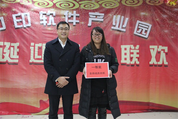 一等獎(jiǎng)獲得者——入園企業(yè)山東正方建設(shè)項(xiàng)目管理有限公司丁超 在聯(lián)歡會(huì)上,拓普書畫院孫老師向在園區(qū)工作的外國(guó)專家贈(zèng)送書畫,祝愿中外同事合作融洽、友誼長(zhǎng)青,讓所有員工在這隆冬中感受到陣陣暖意。聯(lián)歡會(huì)上的游戲抽獎(jiǎng)環(huán)節(jié)熱鬧非凡,大家熱情參與,一位入園企業(yè)員工獲得全自動(dòng)洗衣機(jī)1臺(tái),其他員工獲得保溫水杯、抱枕、筆記本、毛絨玩具等。 聯(lián)歡會(huì)受到臨沂科迅信息有限公司的大力贊助,龍嘟嘟電子商務(wù)有限公司更是帶來了掃碼送堅(jiān)果活動(dòng),讓大家大快朵頤。 在聯(lián)歡會(huì)的最后,誠(chéng)信云平臺(tái)部員工再度跳起《小蘋果》,意猶未盡的同事上臺(tái)一起跳了起來,此次慶圣誕迎新年聯(lián)歡會(huì)在一片歡快聲中圓滿結(jié)束。 |