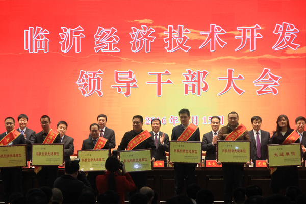 2016年1月15日,臨沂經(jīng)濟技術(shù)開發(fā)區(qū)領(lǐng)導(dǎo)干部大會在臨沂國際會展中心舉行,會議旨在貫徹黨的十八大和十八屆三中、四中、五中全會以及習(xí)近平總書記系列講話精神,總結(jié)工作、表彰2015年度創(chuàng)業(yè)功臣、功勛企業(yè)等先進個人、先進集體。在此會議上,公司獲得“2015年度科技創(chuàng)新先進單位”榮譽稱號,公司外籍專家普拉迪普博士、卡瓦利博士獲得“2015年度十佳科技領(lǐng)軍人物”榮譽稱號。