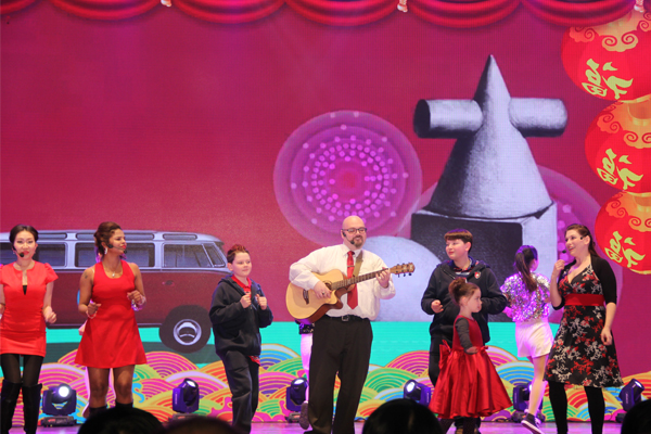 公司外籍專家卡帕娜、愛麗絲和臨沂外國語學(xué)校表演《十三五之歌》