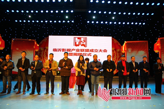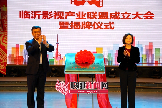 臨沂市委常委、宣傳部長(zhǎng)林國(guó)華(右一),山東影視傳媒集團(tuán)副總經(jīng)理牛煙生出席臨沂影視產(chǎn)業(yè)聯(lián)盟成立大會(huì),并為臨沂影視產(chǎn)業(yè)聯(lián)盟揭牌 臨沂影視產(chǎn)業(yè)聯(lián)盟由臨沂市廣播電視臺(tái)、市委宣傳部文化體制改革發(fā)展領(lǐng)導(dǎo)小組辦公室共同發(fā)起,聯(lián)合本市的影視制作生產(chǎn)機(jī)構(gòu),網(wǎng)絡(luò)視聽(tīng)機(jī)構(gòu),播出機(jī)構(gòu)和從事相關(guān)產(chǎn)業(yè)發(fā)展的企事業(yè)單位,按照平等自愿的原則發(fā)起成立的,目的是為了進(jìn)一步整合臨沂市優(yōu)質(zhì)影視資源,培養(yǎng)優(yōu)秀影視人才,健全和延長(zhǎng)產(chǎn)業(yè)發(fā)展鏈條,將臨沂影視產(chǎn)業(yè)整體打造提升為國(guó)內(nèi)一流的影視產(chǎn)業(yè)平臺(tái),推動(dòng)我市文化產(chǎn)業(yè)跨越發(fā)展。臨沂影視產(chǎn)業(yè)聯(lián)盟歷經(jīng)三個(gè)月的宣傳發(fā)動(dòng)及推薦申報(bào),首批共吸納163家影視相關(guān)企業(yè)加入。