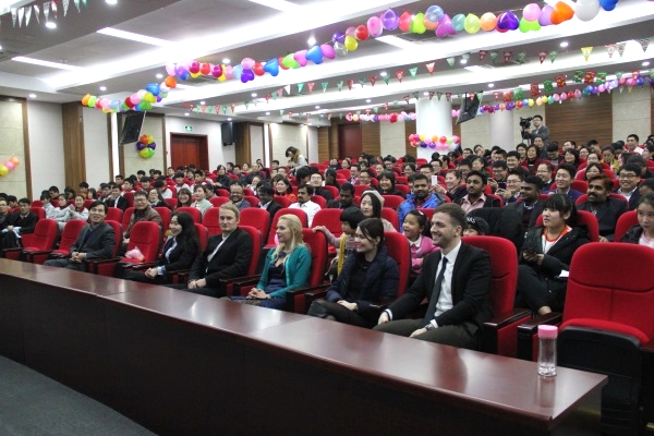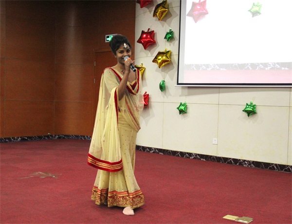 華北電力學(xué)生表演韓國打氣舞 聯(lián)歡會在印度專家卡帕娜《love me like you do》的優(yōu)美歌聲中拉開了序幕;公司國際合作部的外籍專家們個個多才多藝,印度民族歌曲、印度特色舞蹈、烏克蘭專家中文歌曲演唱《北京北京》等精彩節(jié)目精美絕倫;來自入園企業(yè)華北電力的學(xué)生精彩的武術(shù)表演、傳統(tǒng)曲藝表演三句半、小品《男生宿舍的蛻變》、女生舞蹈《韓國打氣舞》等讓人應(yīng)接不暇;《愛是你我》、《東風(fēng)破》、《我相信》、《家住臨沂》、《萍聚》、《我為親人熬雞湯》等眾多經(jīng)典歌曲帶給觀眾耳朵與視覺的雙重盛宴;獨(dú)具特色的小品《新聞大播報》用幽默的語言、詼諧的畫面將時政熱點(diǎn)與園區(qū)工作生活相結(jié)合,讓現(xiàn)場觀眾捧腹大笑。